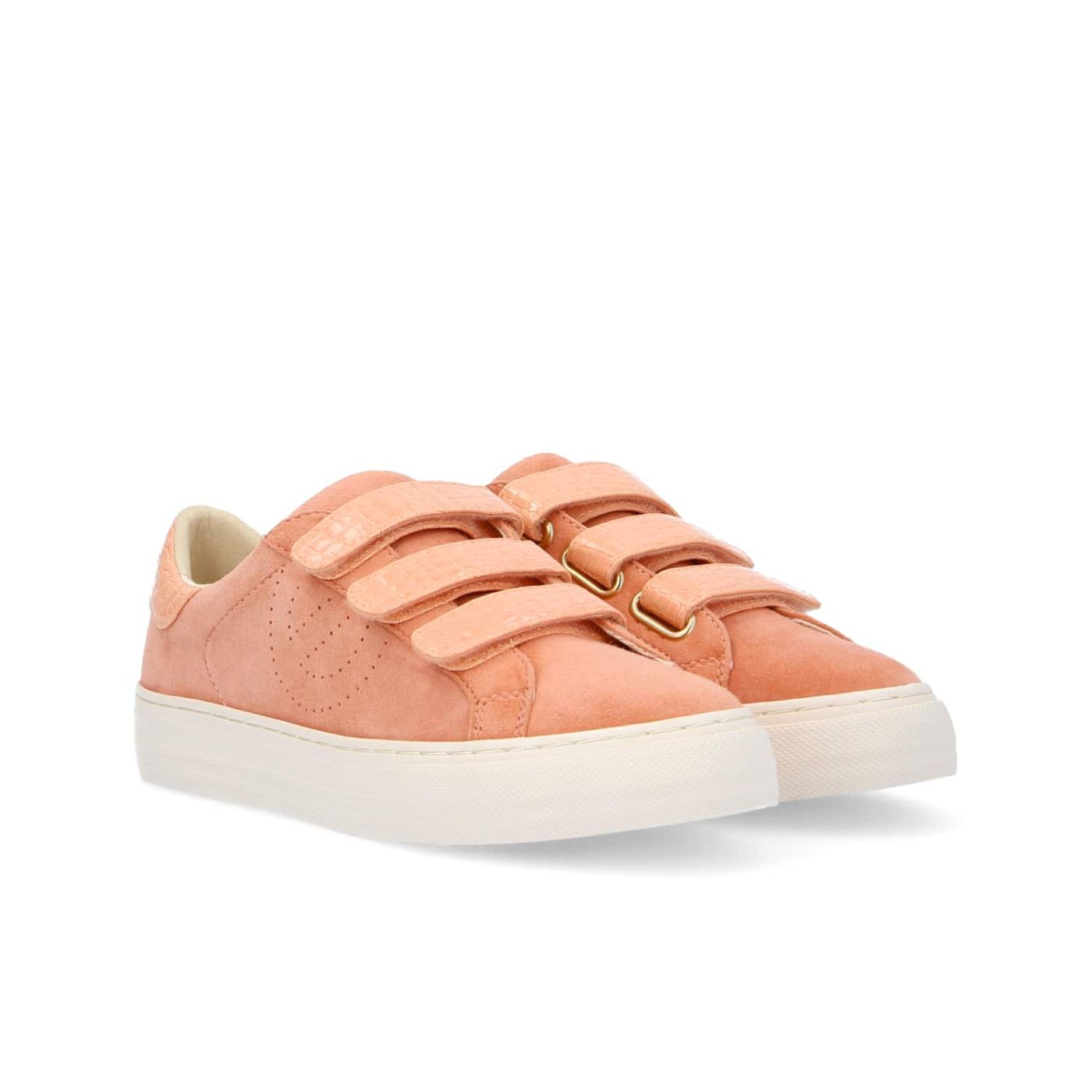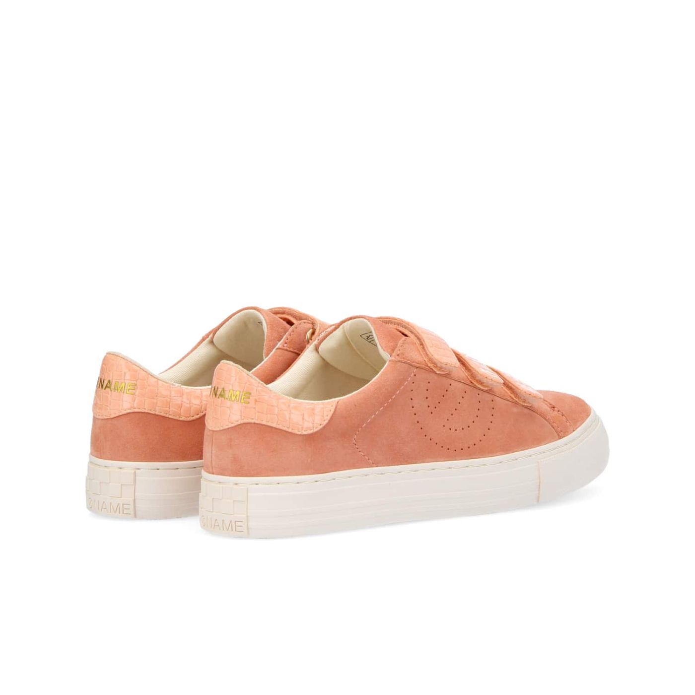 The ARCADE STRAPS is back in an energetic, super-summery version. Its coral suede upper is enhanced by a heel patch and patent croc-print straps. It's rounded off with NO NAME's famous oversized perforated logo and chunky sole. This sneaker embodies summer in all its glory and will add an energetic style to every step you take. -Goat suede and synthetic upper -3 patent croc-print straps -Perforated NO NAME logo on the sides -Embossed logo on the back of the sole and a printed logo on the heel -GOTS-certified organic cotton lining -Doublure en coton biologique certifié GOTS -Removable GOTS-certified organic cotton insole -3 cm rubber sole -Vulcanised sole reinforced with side stitching