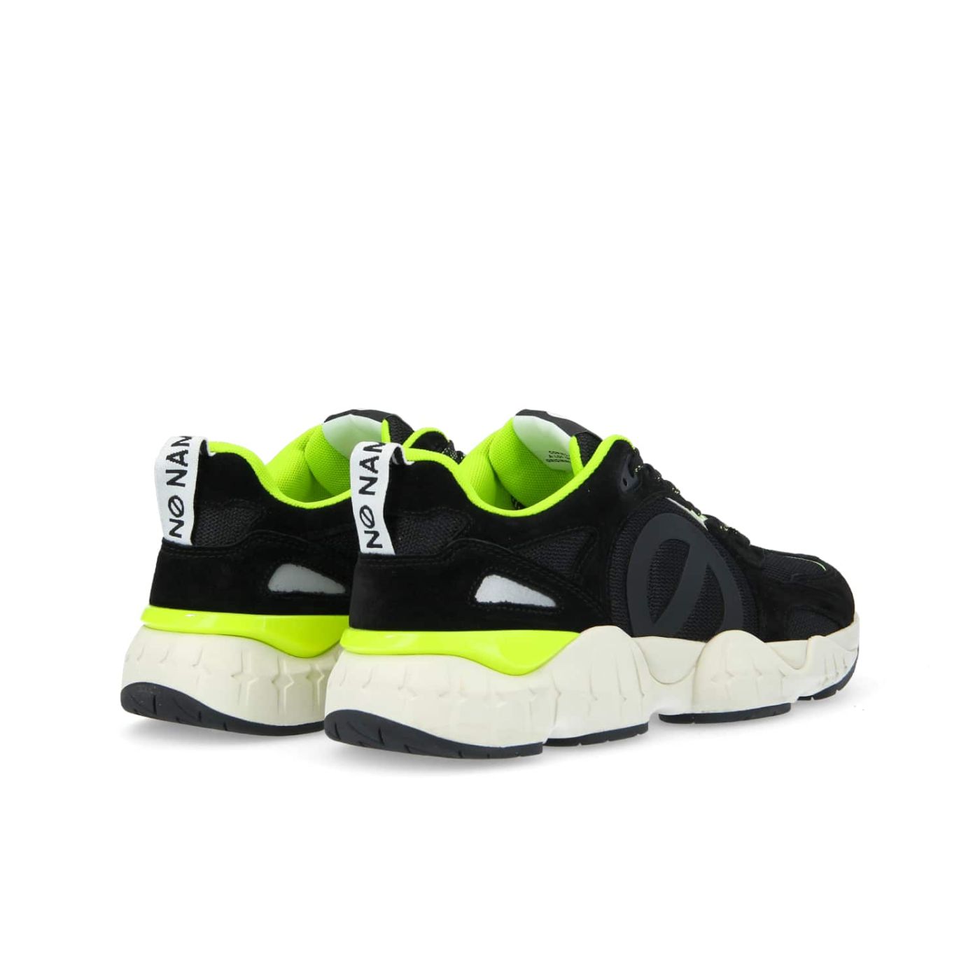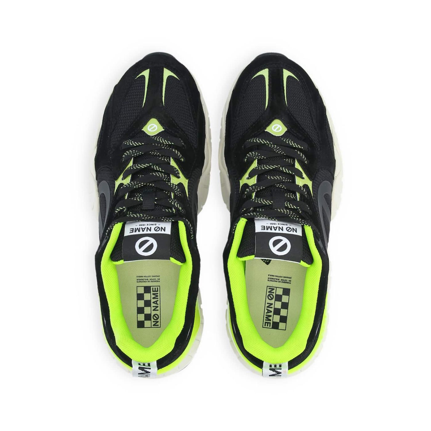 Men's looks are set to be taken to a whole new level with this new NO NAME icon! This black version of the KRAZEE RUNNER cleverly blends recycled mesh* and suede, brightened up by touches of neon yellow. It's stylishly rounded off by a chunky and surprisingly lightweight graphic sole. A bold fusion of style and comfort, guaranteed to attract attention.- GRS-certified calfskin suede and recycled mesh* upper- XXL logos on the sides- Textile lining- Removable GOTS-certified organic cotton insole- Logo heel tab- 4 cm bi-colour EVA and recycled rubber* outsole