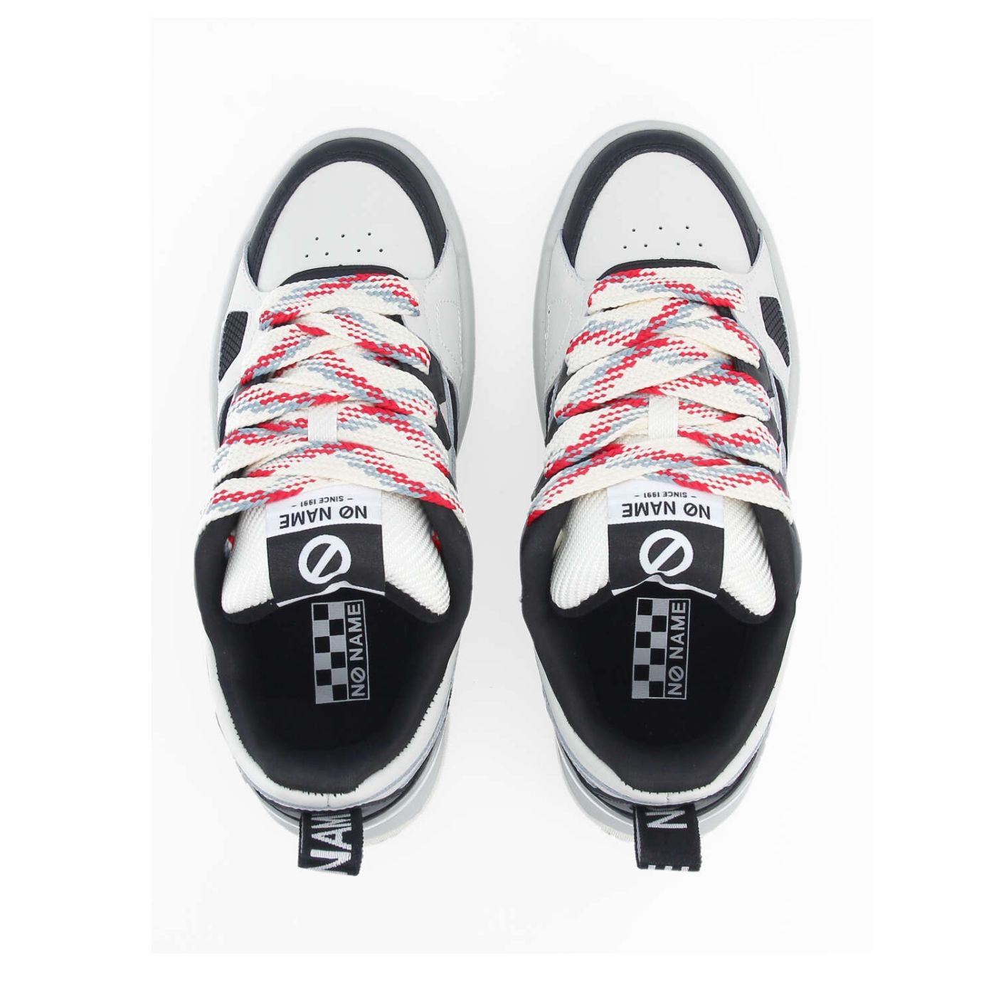 Check out this black and off-white version of NO NAME's NOLLIE SNEAKER, a women's chunky sneaker inspired by the 2000s and the skateboarding world. Its thick 5 cm EVA and rubber sole provide excellent cushioning, while its reinforced heel, collar and tongue ensure a super-comfy feel. Wide skateboarder-style laces accentuate its urban vibe, combined with a platform sole that will up your height and your style. A women's sneaker that redefines the standards of urban fashion. -Calfskin leather, nubuck and polyester upper -Collar and tongue with recycled foam padding -Protective reinforced heel counter -Embroidered logo label on the tongue -Heel pull-tab with logo -Polyester textile lining -Removable polyester textile insole -XXL skateboarder style laces + a second tone-on-tone pair -Extra lightweight 5 cm EVA and rubber sole