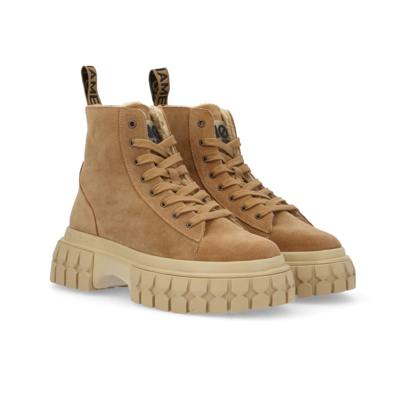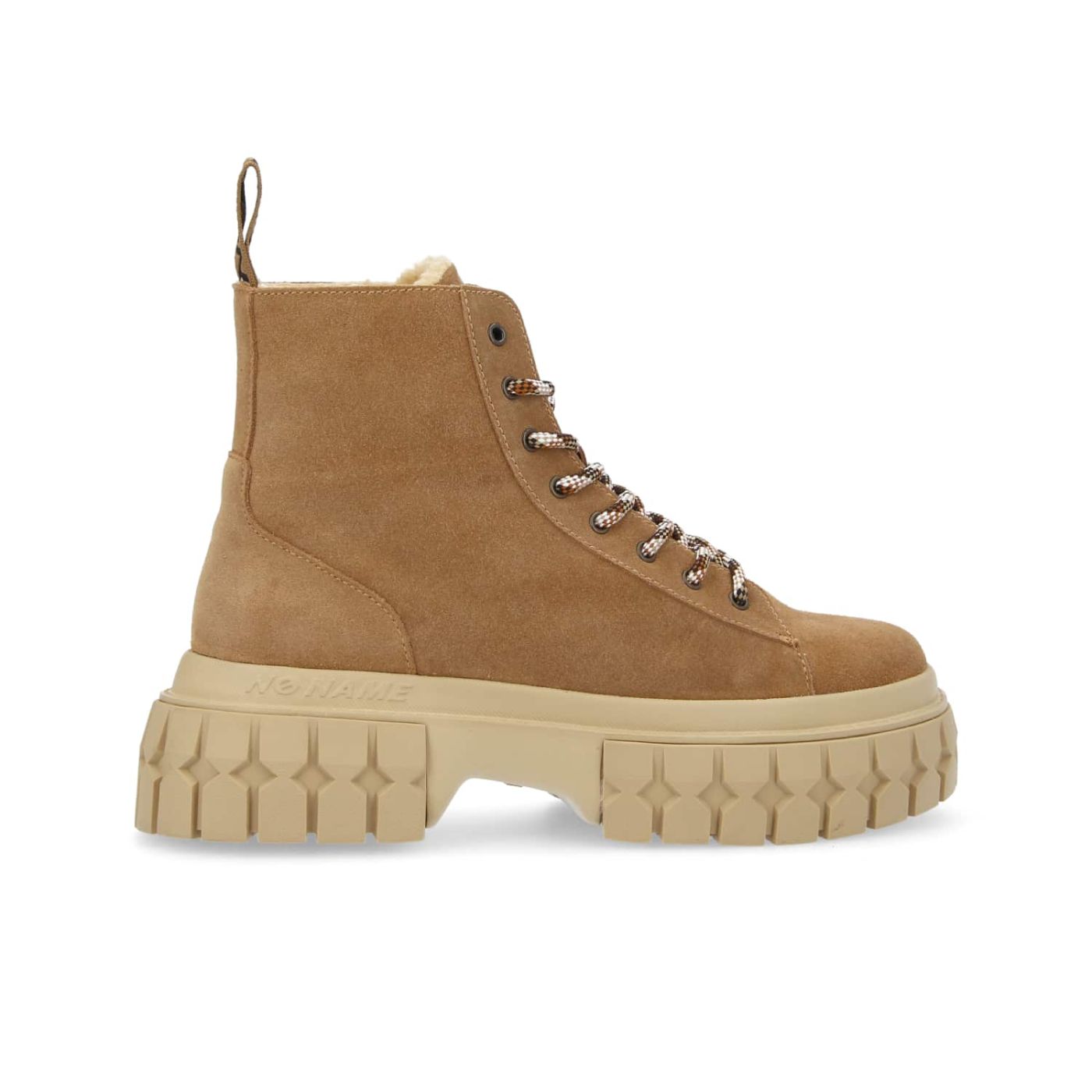 Check out this hazelnut brown version of NO NAME's GRAVITEE LOW BOOTS, perfect for an outdoor meets urban style. These comfy, lightweight suede ankle boots have a warm bouclé knit lining and a lugged sole for optimal grip on all surfaces. The round hiker-style laces and heel pull-tab make it easy to slip on and off for an on-trend ankle boot and must-have addition to your urban wardrobe. -Calfskin suede upper -Polyester textile lining -Removable microfibre textile insole -Pull-tab with logo on the back of the collar -5 cm ultra-lightweight textured EVA and rubber sole -Bicolour round laces -Also comes with a set of plain flat laces