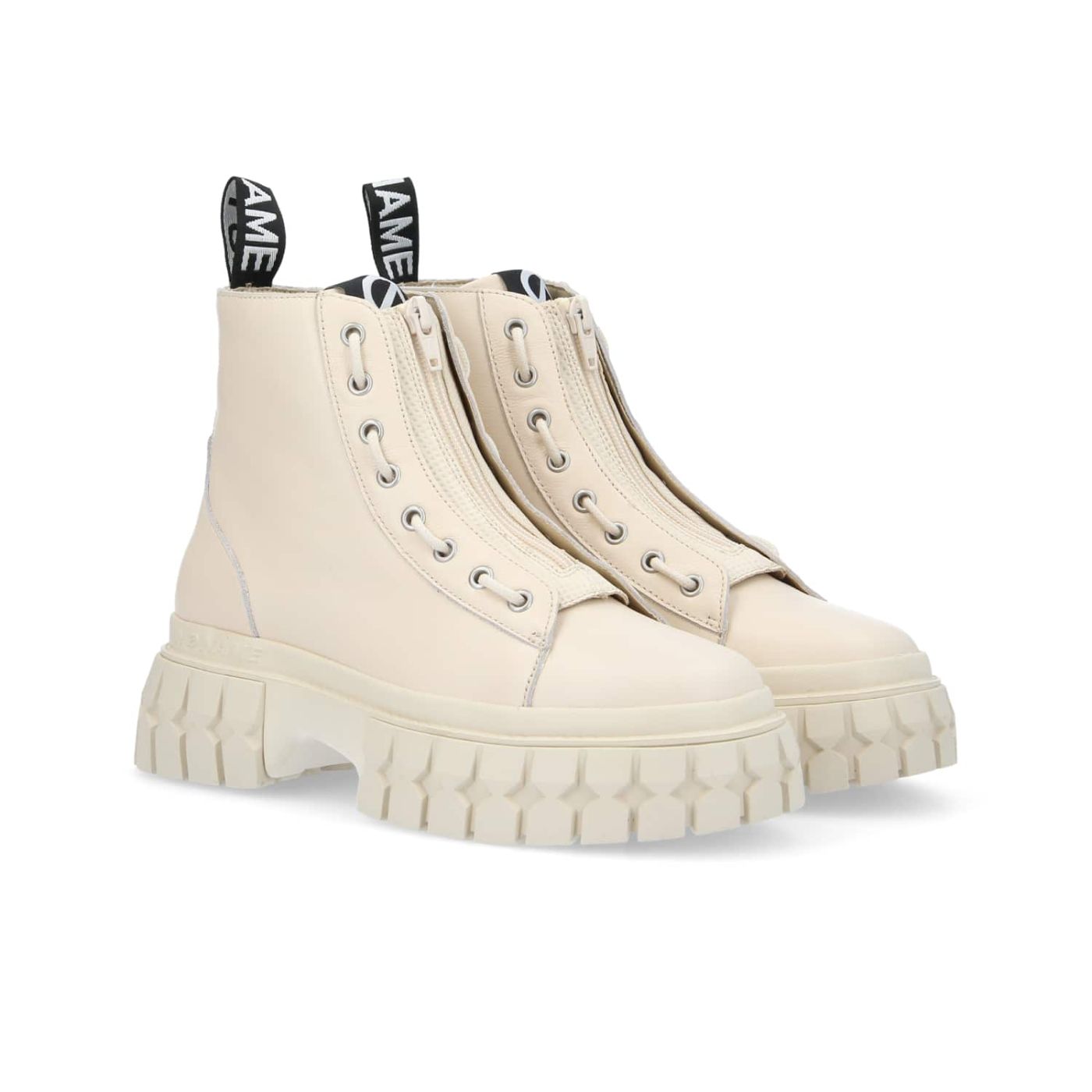 Check out this GRAVITEE ZIP BOOTS from NO NAME, an off-white lace-up platform ankle boot crafted from grained leather for a unique outdoor style. It has a removable zipped insert, bicolour round laces and an EVA and rubber sole for a durable, lightweight, comfy design. With sturdy metal eyelets and a pull-tab on the collar, this ankle boot will easily round off your favourite on-trend looks. -Grained calfskin leather upper -Polyester textile lining -Removable microfibre textile insole -Pull-tab with logo on the back of the collar -5 cm ultra-lightweight textured EVA and rubber sole -Removable zipped insert -Bicolour round laces