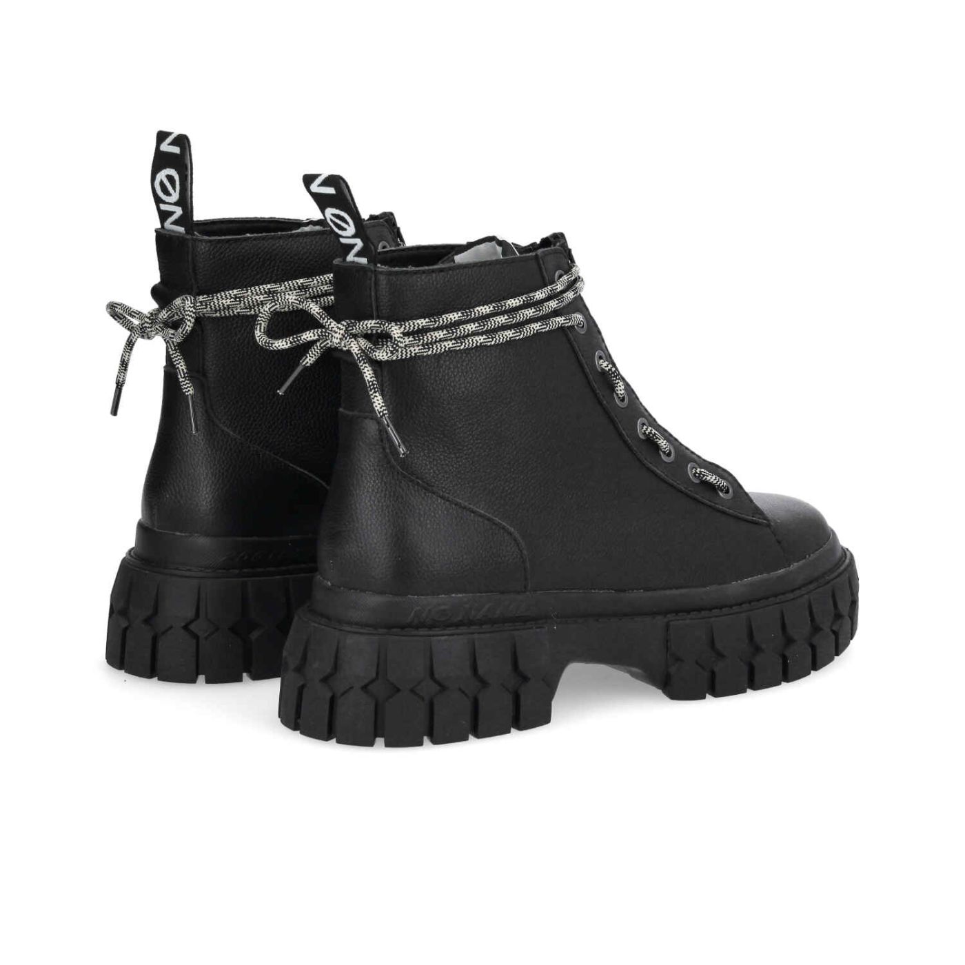 Check out this GRAVITEE ZIP BOOTS from NO NAME, an all-black lace-up platform ankle boot crafted from grained leather and packed with outdoor style. It has a removable zipped insert, bicolour round laces and an EVA and rubber sole for a durable, lightweight, comfy design. With sturdy metal eyelets and a pull-tab on the collar, this ankle boot will easily round off your favourite on-trend looks. -Grained calfskin leather upper -Polyester textile lining -Removable microfibre textile insole -Pull-tab with logo on the back of the collar -5 cm ultra-lightweight textured EVA and rubber sole -Removable zipped insert -Bicolour round laces
