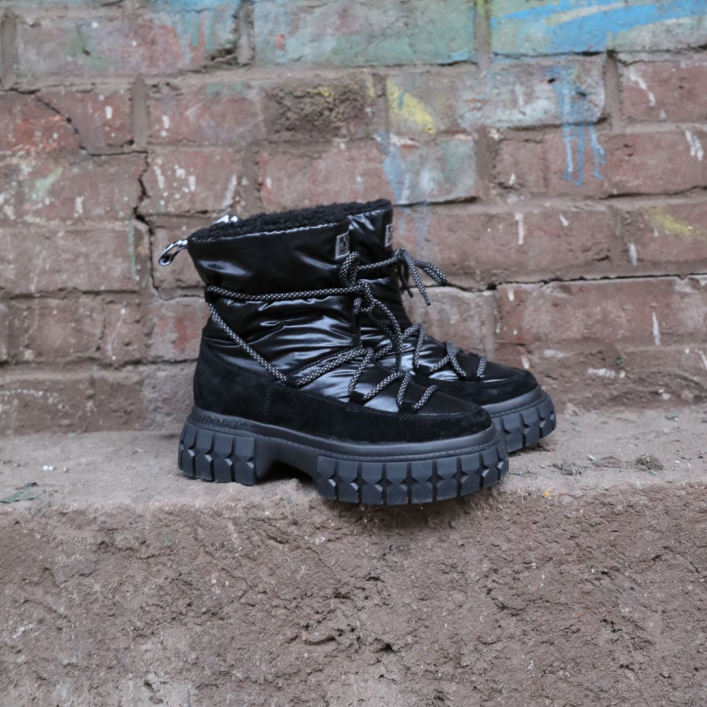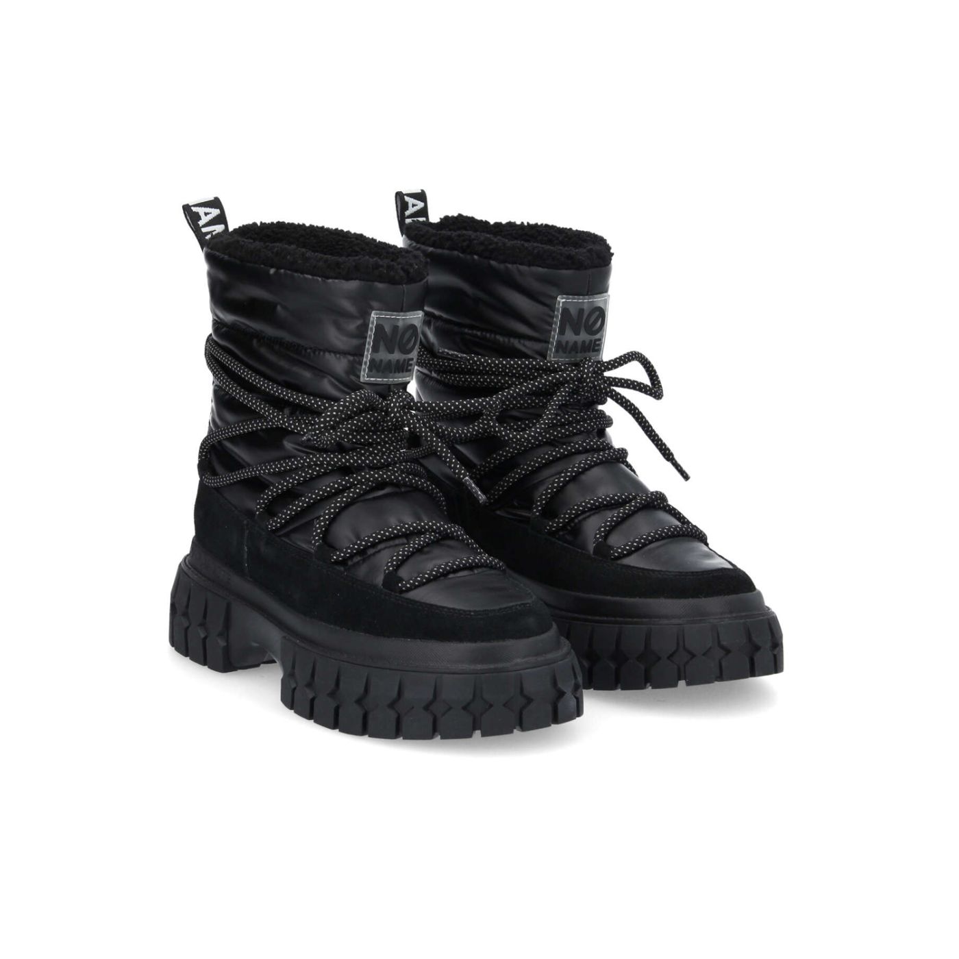 NO NAME's GRAVITEE SNOWBOOTS are women's après-ski boots made from waterproof canvas and black suede, lined with a cosy polyester bouclé knit. A 5 cm EVA and rubber platform sole provides optimal grip and a lightweight feel. The perfect boot to tackle all your urban adventures in comfort and style. -Polyester and calfskin suede upper -Polyester textile lining -Removable polyester textile insole -Pull-tab with logo on the back of the collar -5 cm ultra-lightweight textured EVA and rubber sole -Bicolour round laces -Also comes with a set of plain round laces