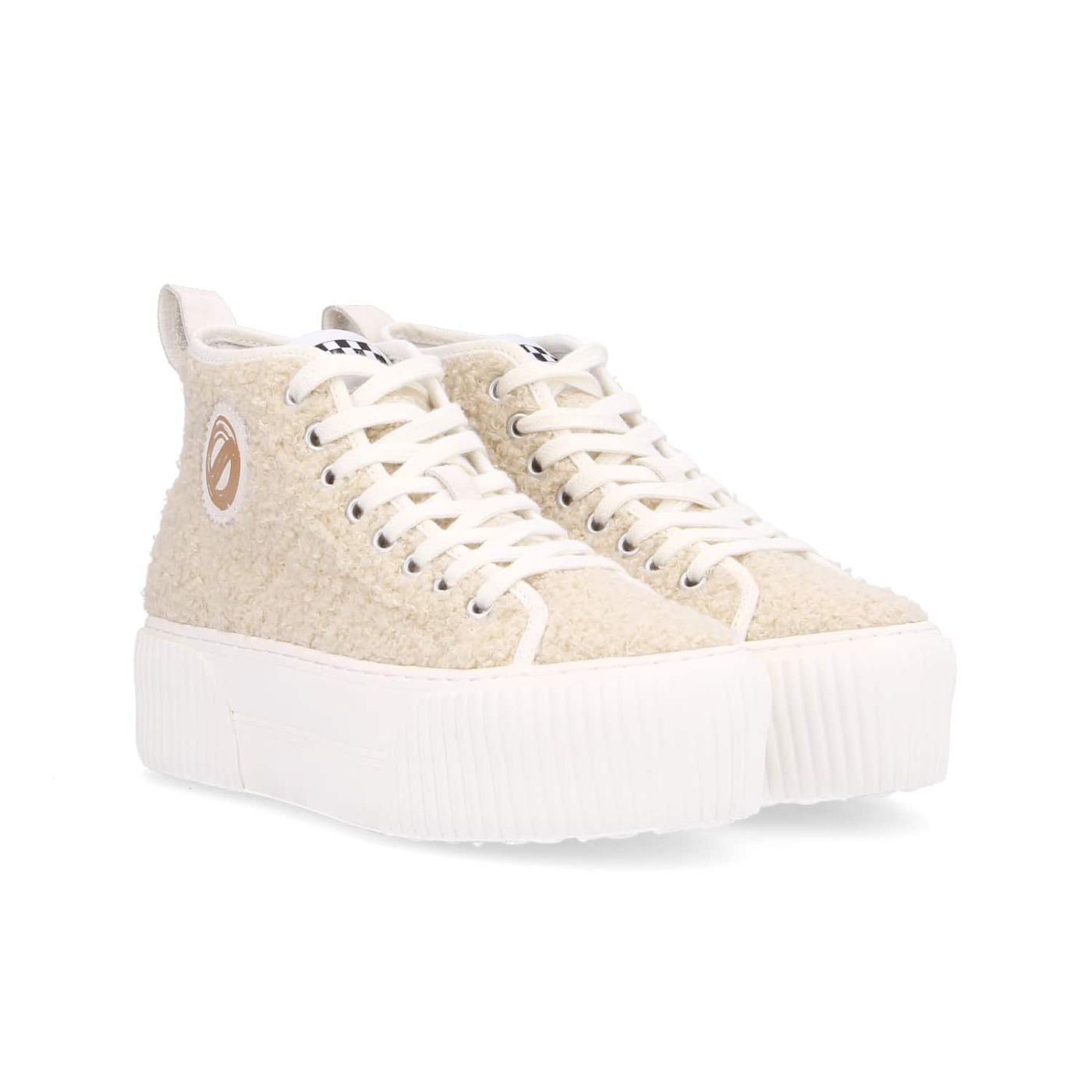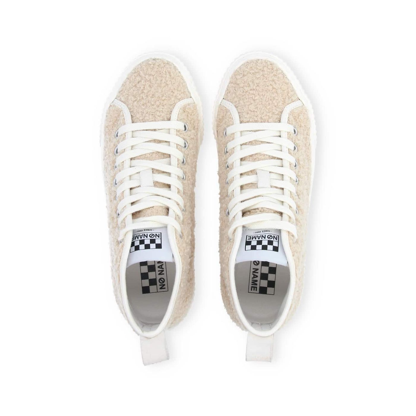 Cette saison, NO NAME fait la part belle aux matières cocooning pour une basket tout confort. L’IRON MIDE SIDE devient ainsi une sneaker toute douce avec son dessus en laine beige et son intérieur rembourré sans jamais rien perdre de son côté mode.