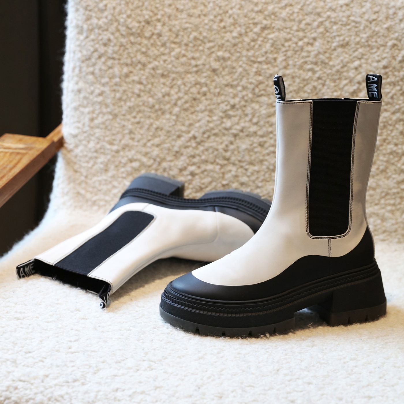 L’iconique chelsea boots prend de la hauteur chez NO NAME avec la STRONG HI CHELSEA. Une bottine qui ne manque pas de style avec son look bicolore et ses matières toutes douces. Un incontournable de la saison !