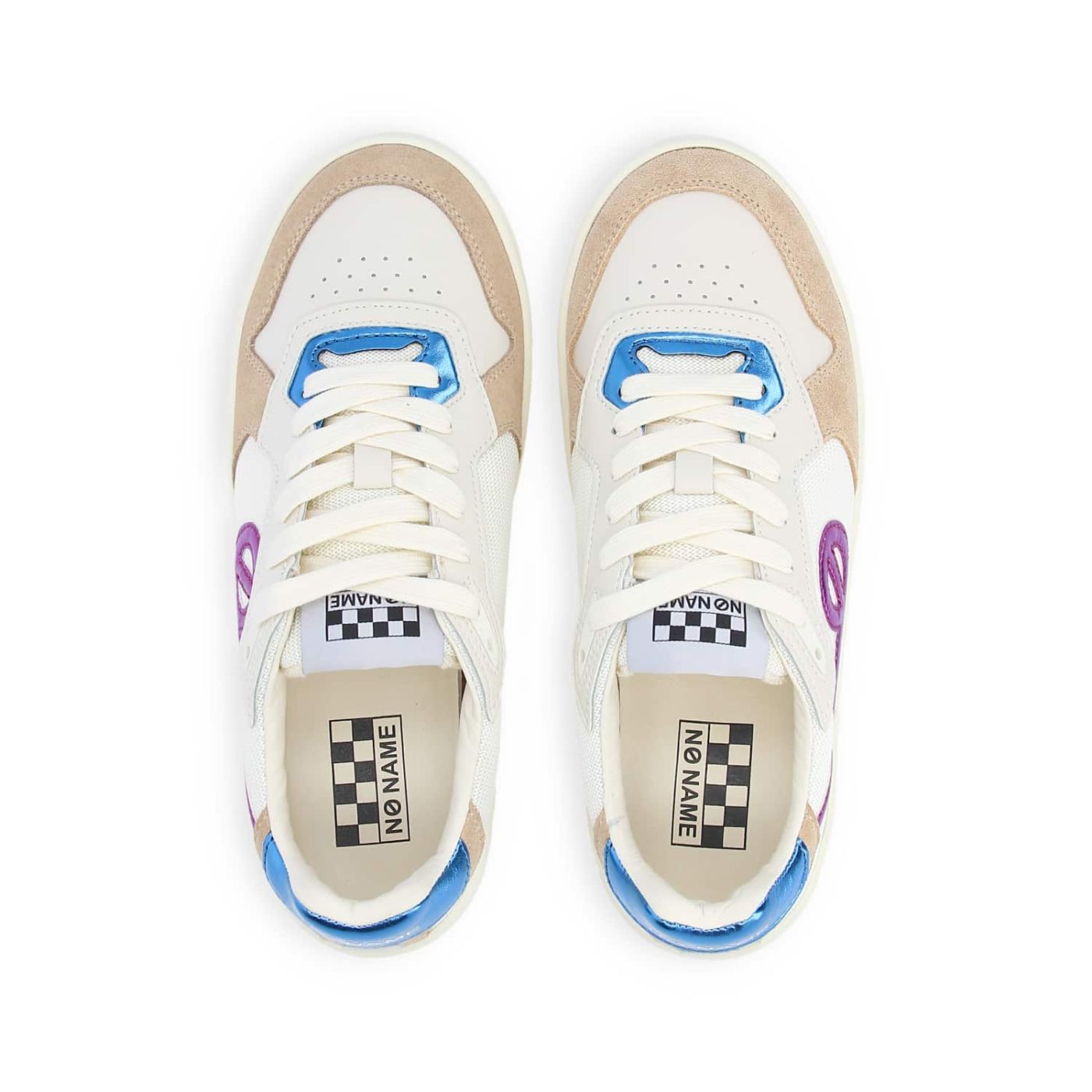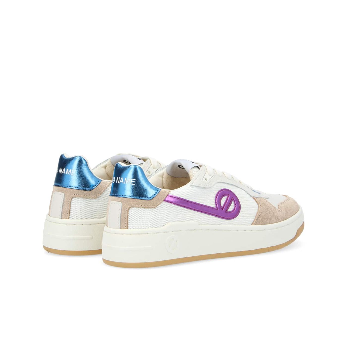 Avec le KELLY SNEAKER, NO NAME fusionne les tendances rétro et contemporaines et signe une sneaker résolument féminine. S'inspirant pleinement de l'esthétique sportive des années 90, elle fusionne une tige en textile recyclé* écru avec des accents de cuir velours beige et de cuir métallisé aux couleurs pop. Posée sur une épaisse semelle, elle affiche un look moderne et girly qui donnera du pep’s à toutes tes tenues.