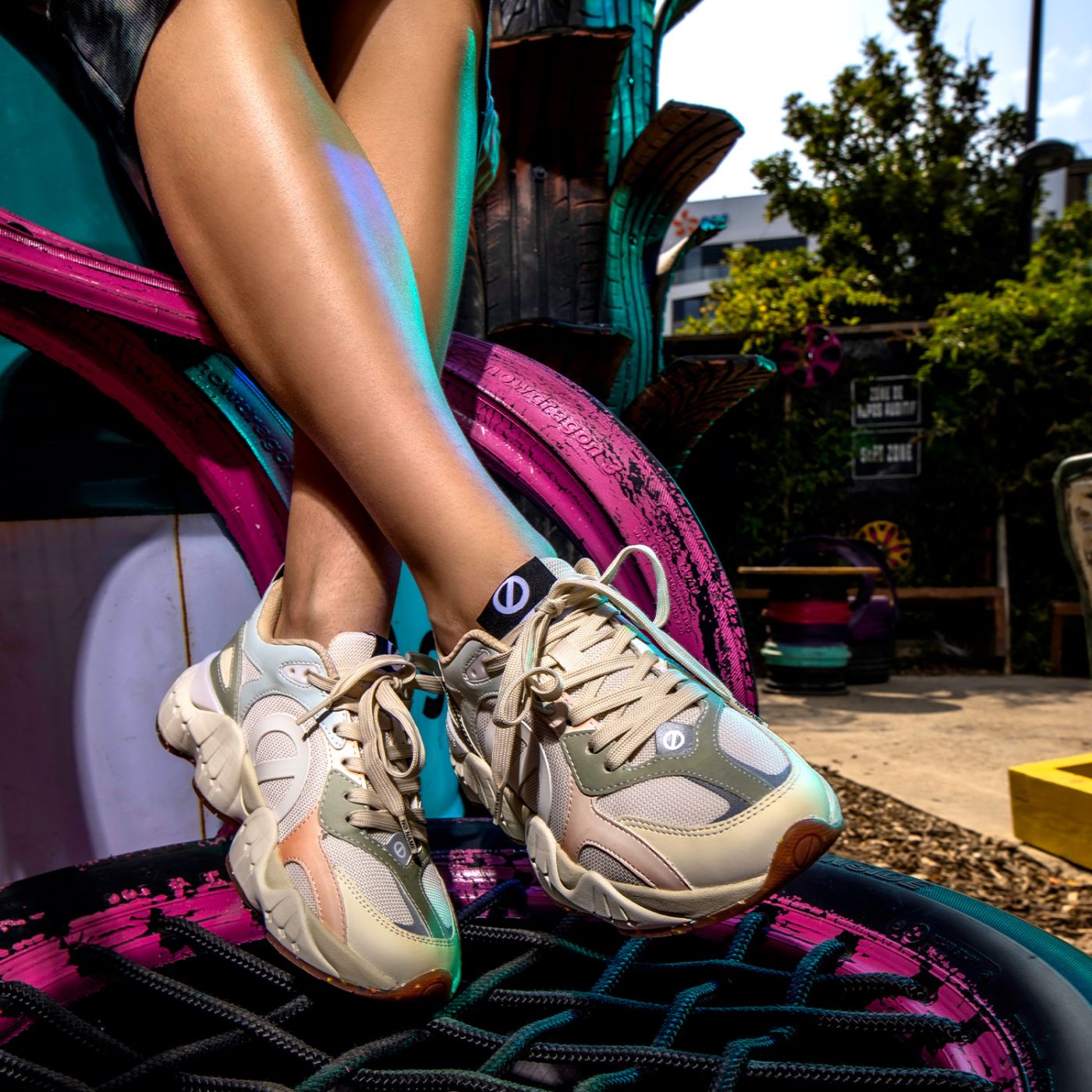 NO NAME bouleverse une nouvelle fois les codes du sportswear et s’autorise une expérience inédite avec cette version fun de la KRAZEE RUNNER qui joue avec les couleurs. Cette jogger en mesh écru est parsemée d’empiècements blancs qui se colorent sous l’effet des rayons du soleil. Unie à l’ombre, la It-Shoe de la saison se transforme en un tourbillon de couleurs sous le soleil, incarnant une véritable ode à la vitalité et au dynamisme de la femme NO NAME. -Dessus en synthétique et mesh recyclé* certifié GRS -Logos XXL sur les côtés -Doublure en textile -Première de propreté amovible en coton biologique certifié GOTS -Languette logotypée à l’arrière -Semelle bicolore de 4 cm en EVA et caoutchouc recyclé*