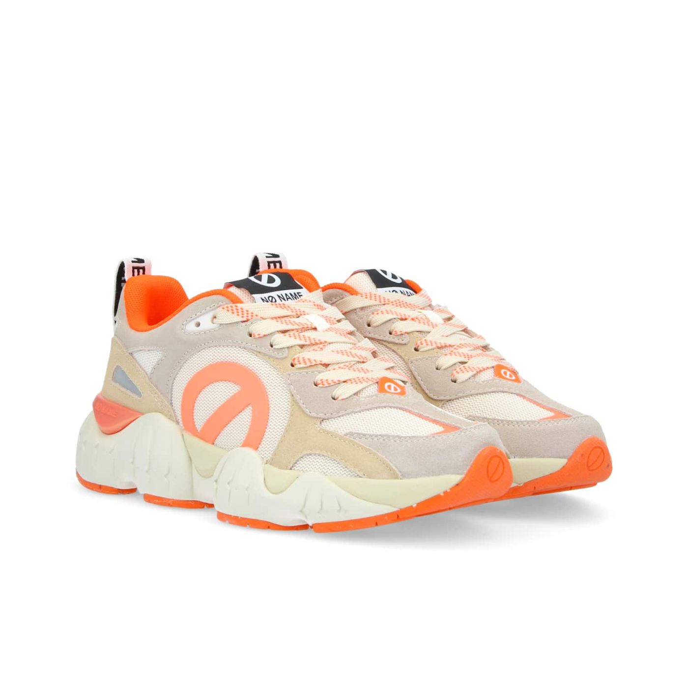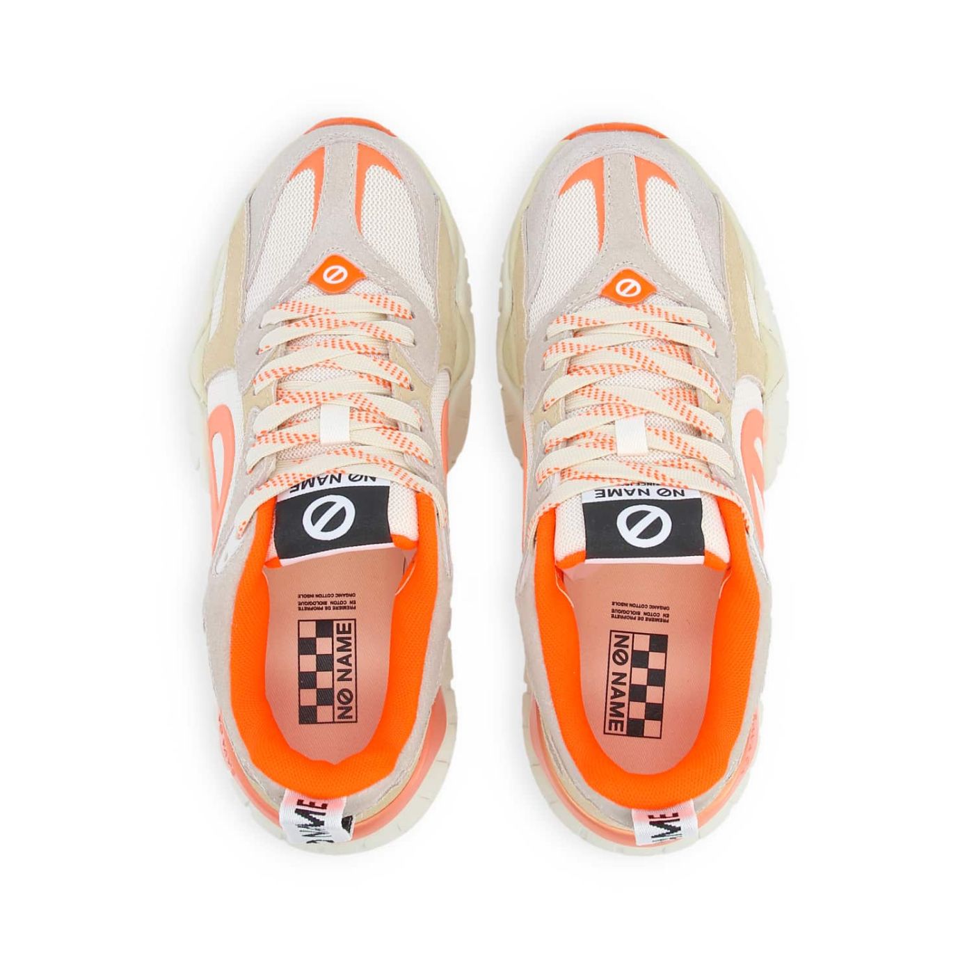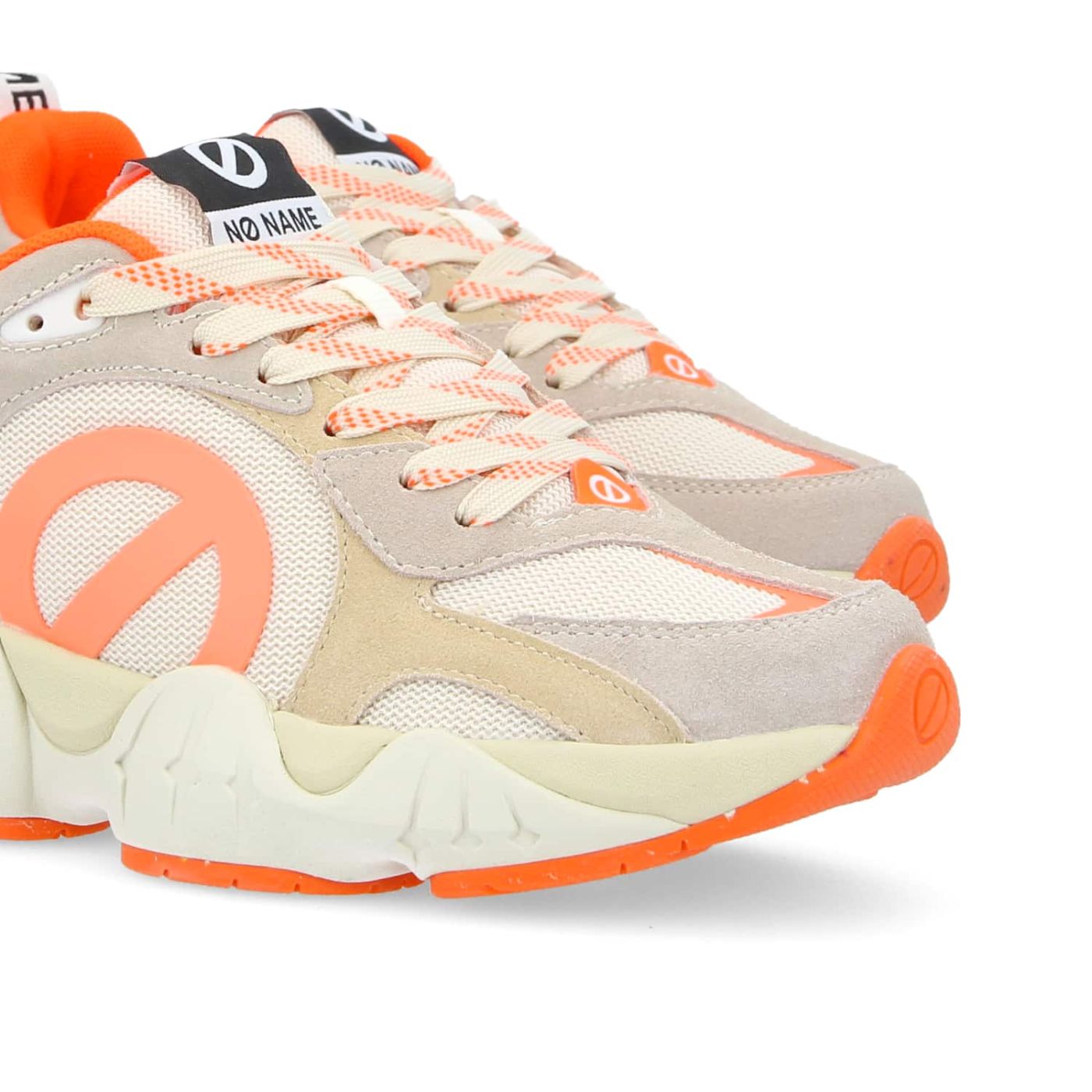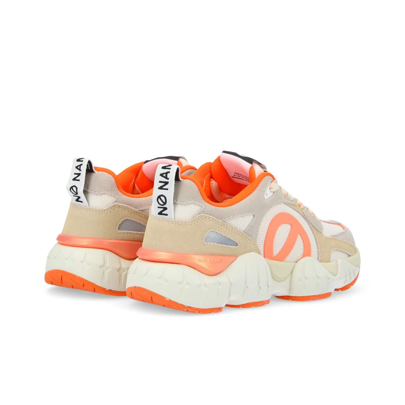 La KRAZEE RUNNER revisitée dans une version ultra vitaminée pour booster les looks de l’été. Dans cette version en mesh écru et cuir velours sable, rehaussée de touches oranges, cette jogger marie avec audace une esthétique futuriste à des inspirations vintage. Campée sur une semelle graphique ultra légère, la nouvelle icône de NO NAME s’impose comme la pièce trendy de la saison, prête à illuminer tes tenues estivales d’une touche de vitalité. -Dessus en cuir de vachette velours et mesh recyclé* certifié GRS -Logos XXL sur les côtés -Doublure en textile -Première de propreté amovible en coton biologique certifié GOTS -Languette logotée à l’arrière -Semelle bicolore de 4 cm en EVA et caoutchouc recyclé*