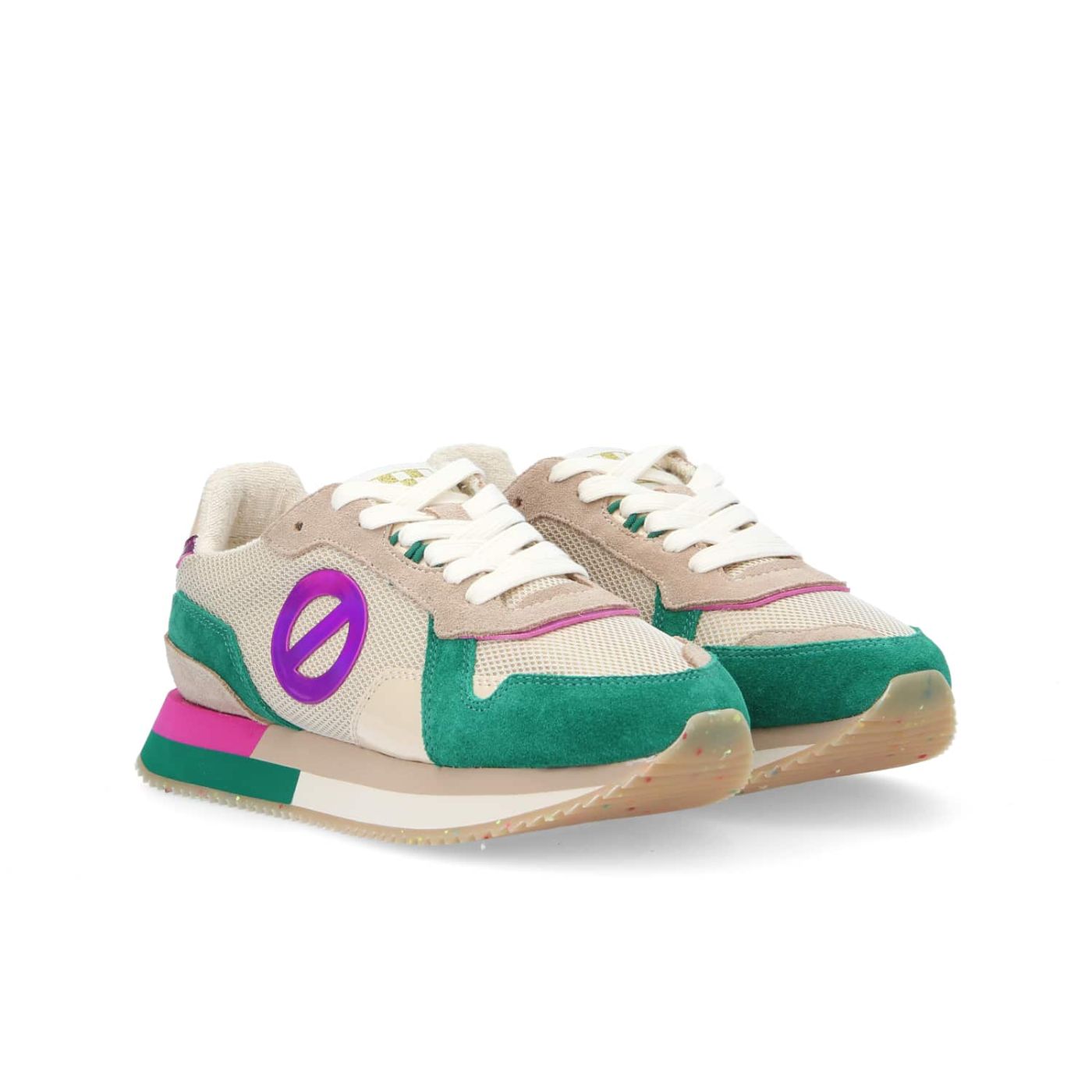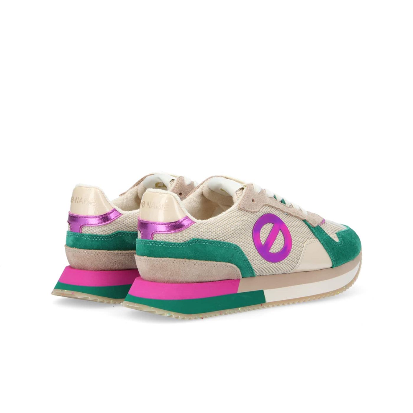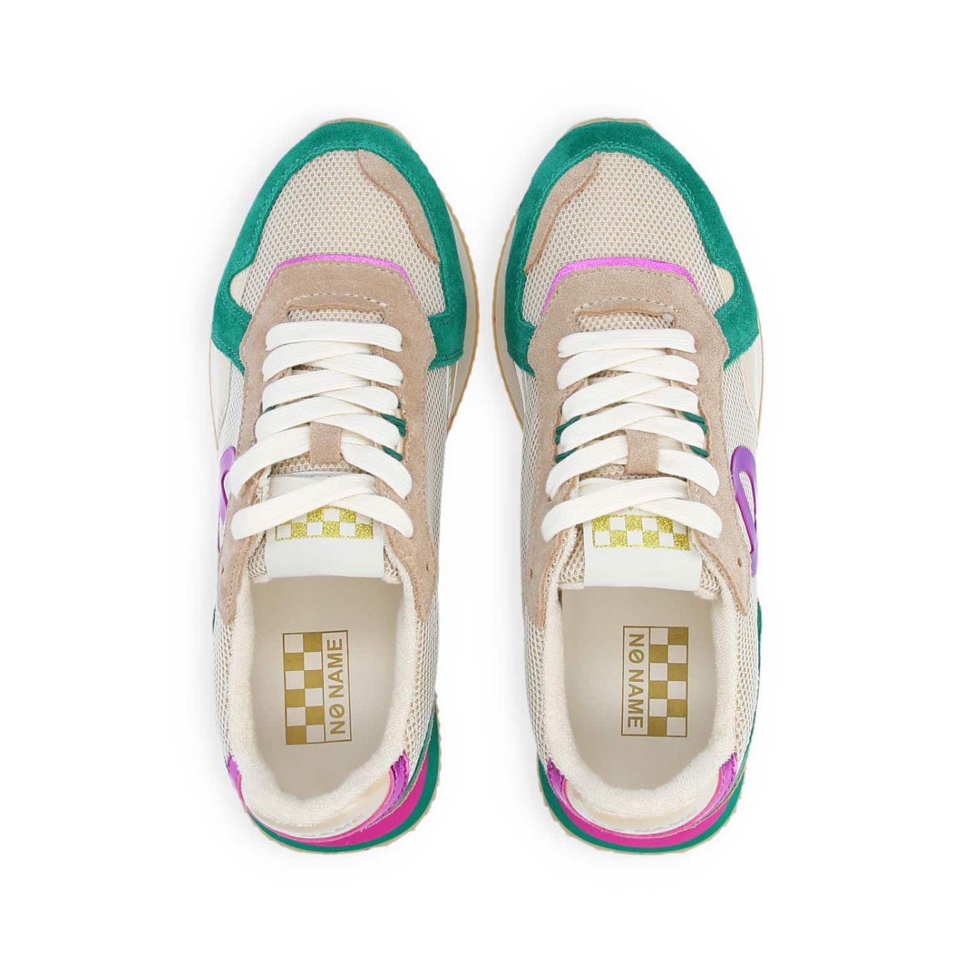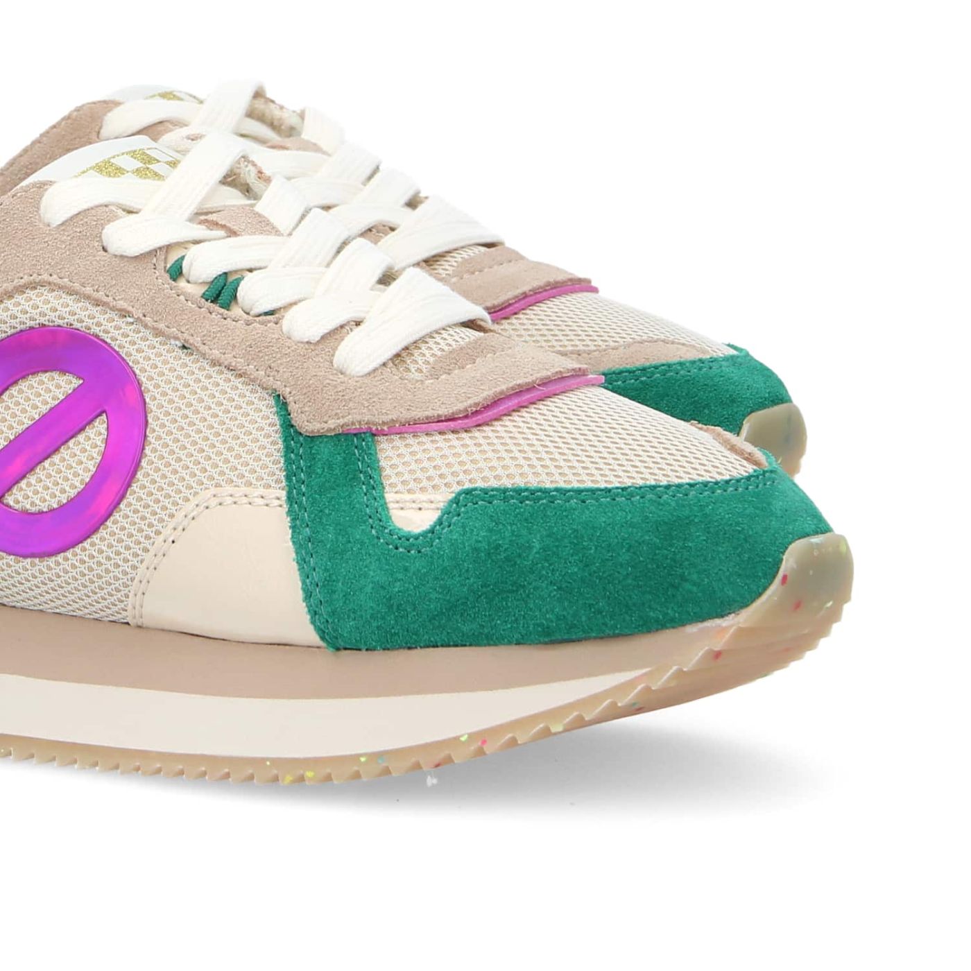 La MIA JOGGER impose son style dans cette version délicatement irisée. Son dessus en toile beige subtilement scintillant est ponctué d’empiècements en cuir velours vert émeraude. Cette jogger color block se démarque grâce à des touches de rose et un logo oversize. Posée sur une semelle graphique quatre couleurs, cette NO NAME redéfinit avec assurance les codes du sportswear.- Dessus en textile et cuir de vachette velours- Logo XL sur les côtés