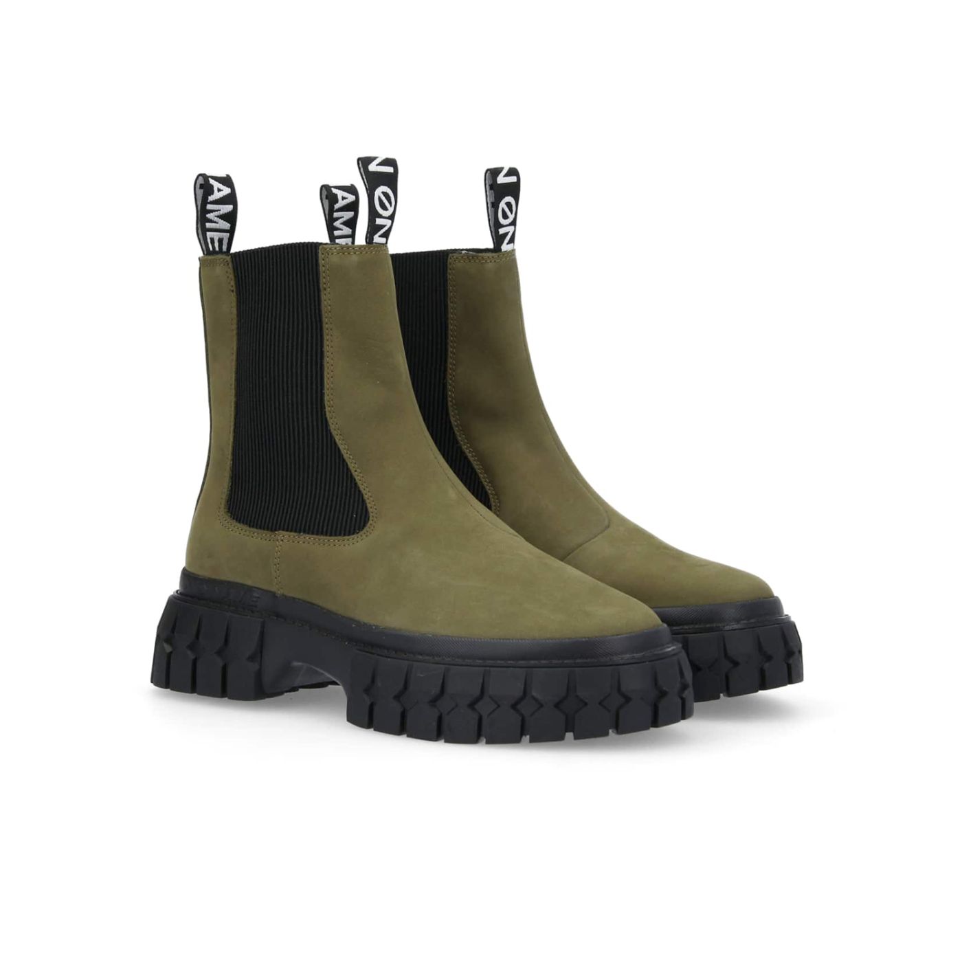 Découvrez la version vert olive de la GRAVITEE CHELSEA, avec sa tige en cuir velours rehaussée de larges élastiques côtelés ton sur ton et de deux tirettes logotées en haut de la tige. Facile à enfiler et posée sur une imposante semelle crantée noire, cette bottine donnera de la hauteur à ton look.