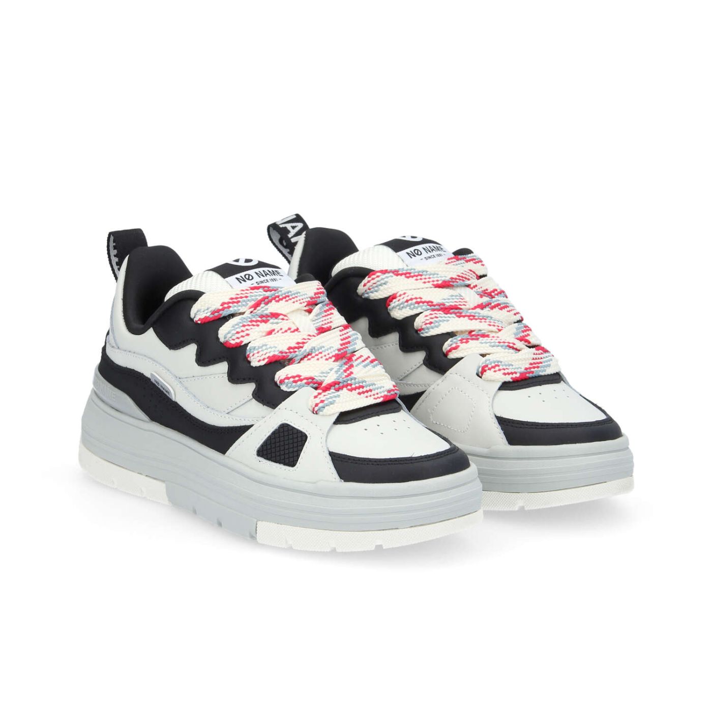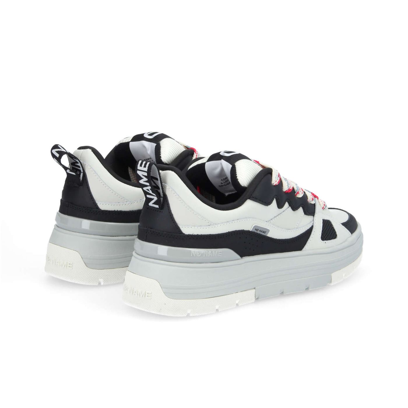Découvrez la NOLLIE SNEAKER de NO NAME en version noire et blanc cassé, une basket femme chunky inspirée des années 2000 et du skate. Sa semelle épaisse de 5 cm en EVA et caoutchouc assure un excellent amorti, tandis que les renforts au talon, col et languette garantissent un confort inégalé. De larges lacets skate accentuent son caractère urbain, tandis que la plateforme ajoute une nouvelle dimension à votre look. Une sneaker femme qui redéfinit les standards de la mode urbaine. - Dessus en cuir de vachette, nubuck et polyester - Col et languette rembourrées en mousse recyclée - Renfort de protection à l’arrière du talon - Étiquette logo brodée sur la languette - Tirette logotypée à l’arrière - Doublure textile polyester - Première de propreté amovible en textile polyester - Lacets skate XXL + deuxième paire ton sur ton - Semelle extra légère de 5 cm en EVA et caoutchouc