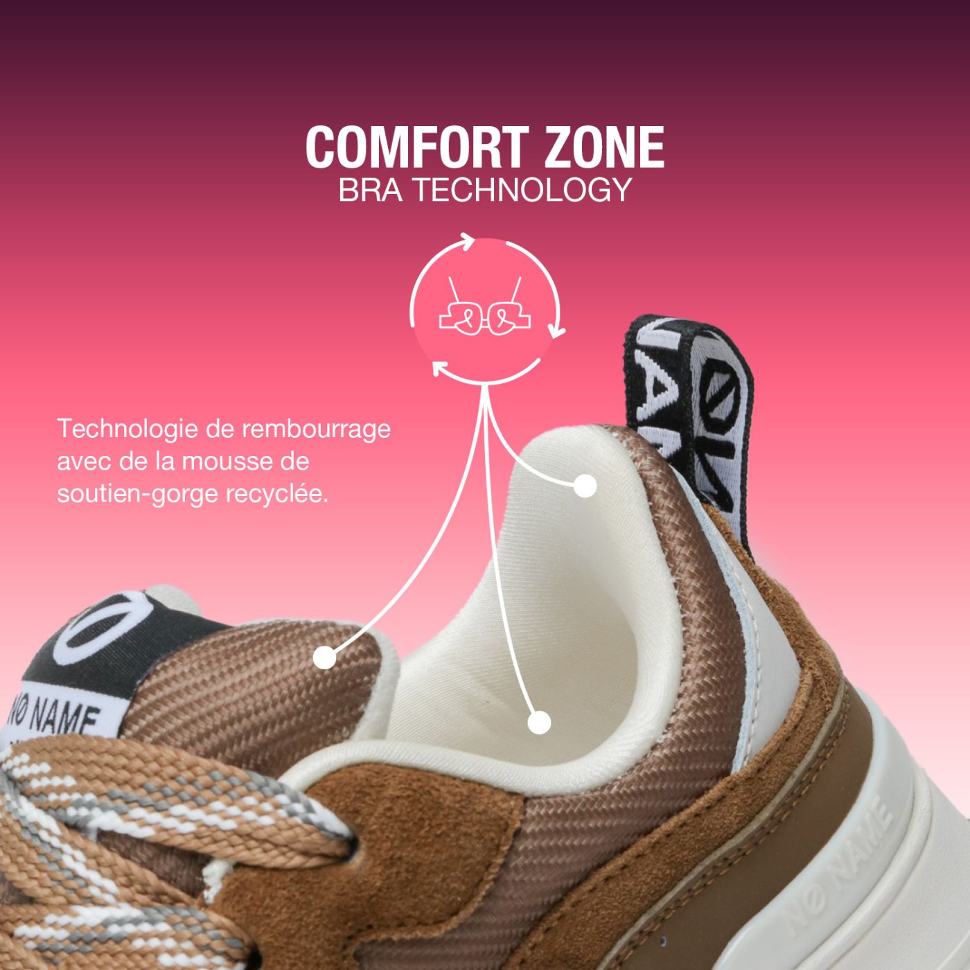 Découvrez la NOLLIE SNEAKER de NO NAME dans une version automnale, une basket femme chunky inspirée des années 2000 et du skate. Sa semelle épaisse de 5 cm en EVA et caoutchouc assure un excellent amorti, tandis que les renforts au talon, au col et à la languette garantissent un confort inégalé. De larges lacets skate accentuent son caractère urbain, tandis que la plateforme ajoute une nouvelle dimension à votre look. Une sneaker femme qui redéfinit les standards de la mode urbaine. - Dessus en cuir de vachette, nubuck et polyester - Col et languette rembourrées en mousse recyclée - Renfort de protection à l’arrière du talon - Étiquette logo brodée sur la languette - Tirette logotypée à l’arrière - Doublure textile polyester - Première de propreté amovible en textile polyester - Lacets skate XXL + deuxième paire ton sur ton - Semelle extra légère de 5 cm en EVA et caoutchouc