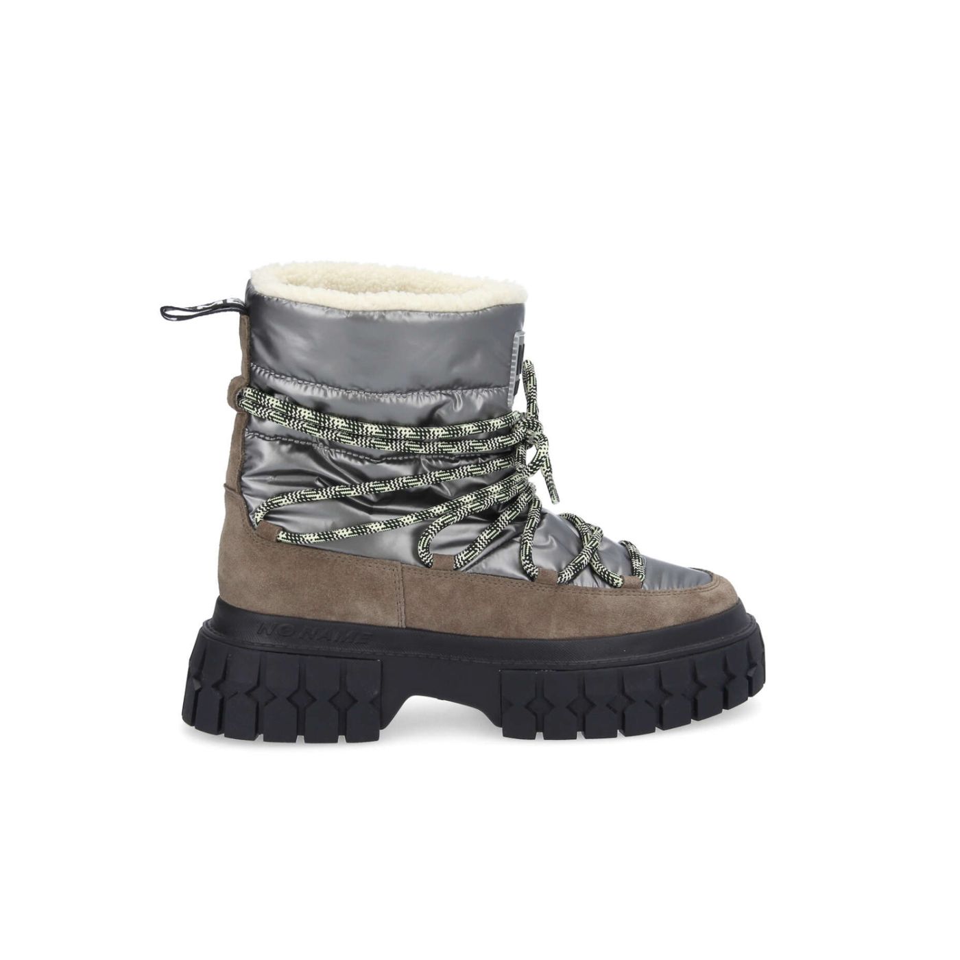 Cet hiver, la GRAVITÉE SNOWBOOTS s’inspire de l’univers outdoor pour ajouter une touche chaleureuse et réconfortante à ton vestiaire. Cette botte en toile déperlante métallisée et cuir velours taupe est doublée de polyester bouclette pour assurer la chaleur. Sa semelle plateforme de 5 cm en EVA et caoutchouc permet une meilleure adhérence tout en restant légère. Avec cette paire au style après-ski, perchée sur une semelle crantée couleur sable, NO NAME bouleverse une fois de plus les codes de la mode.
