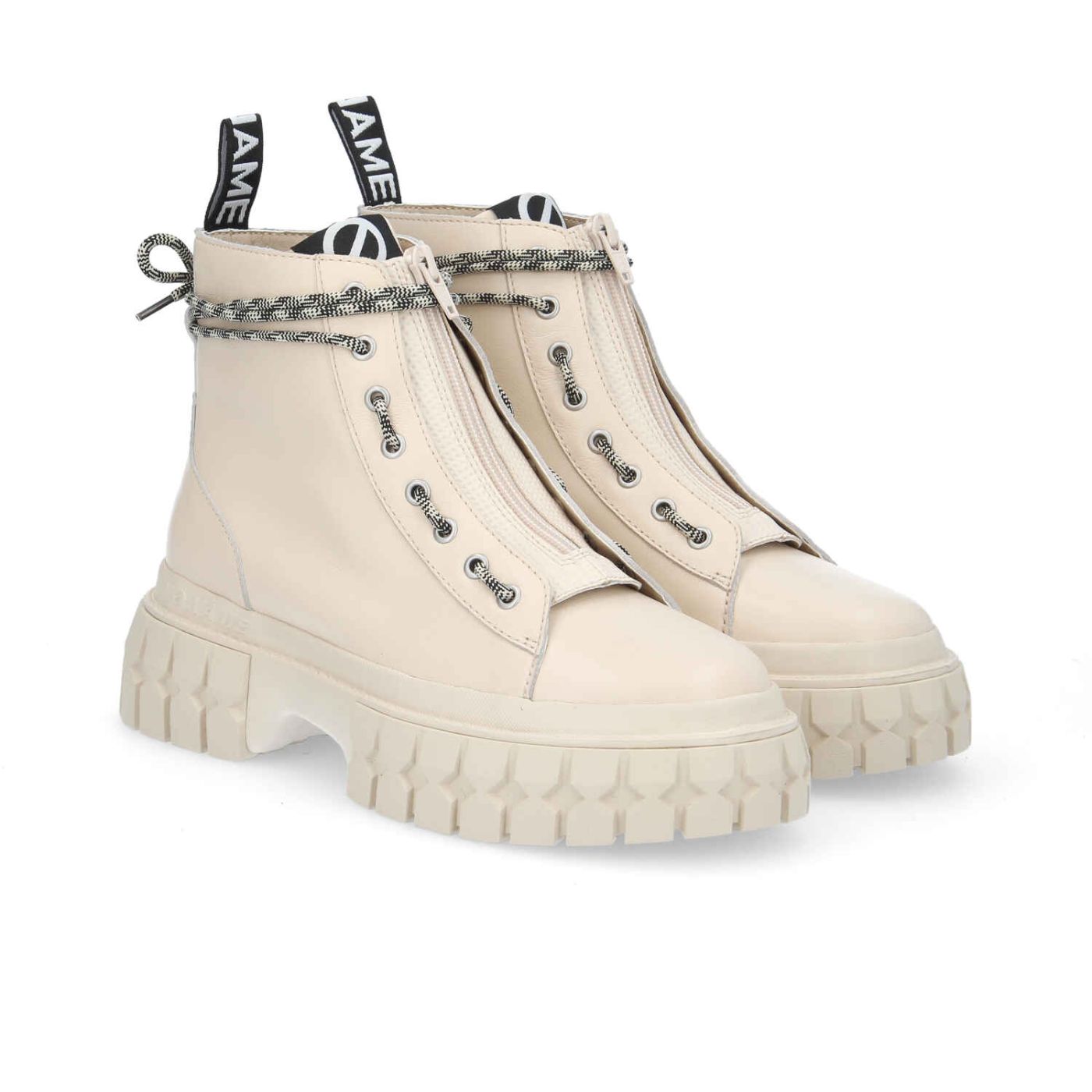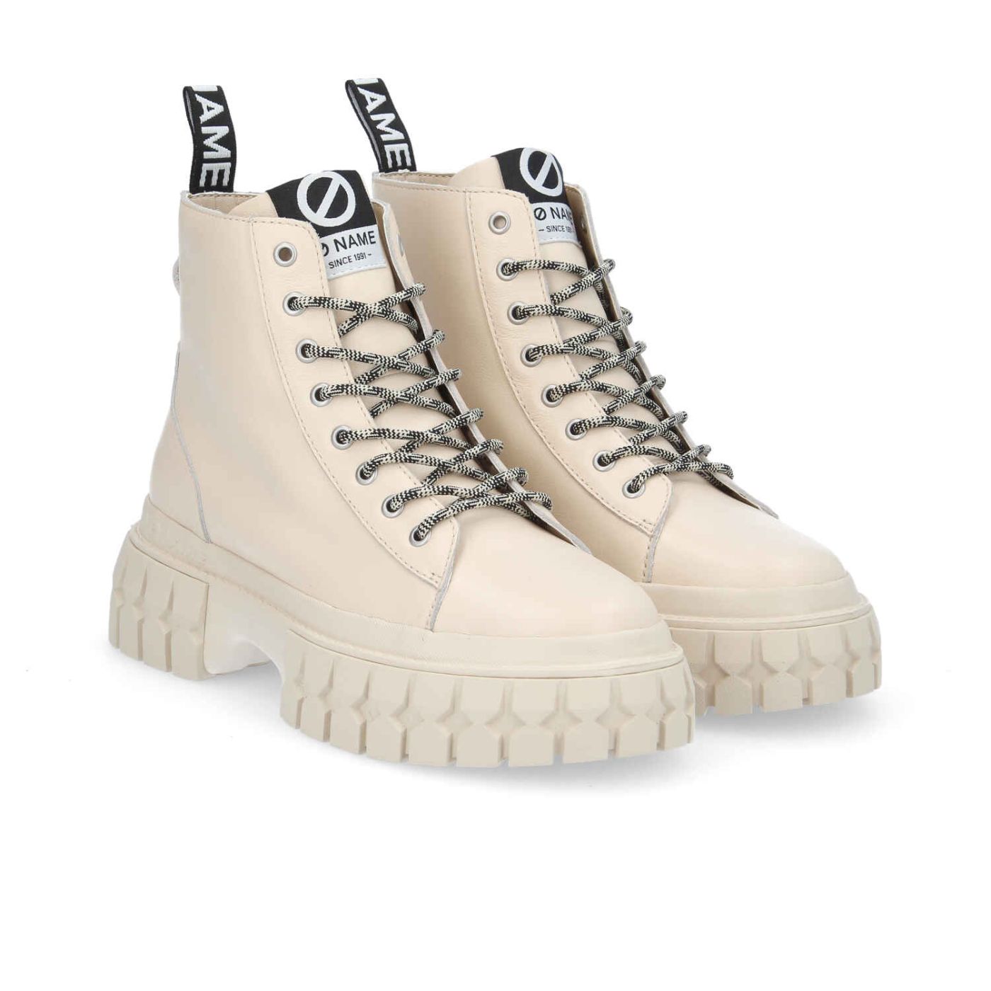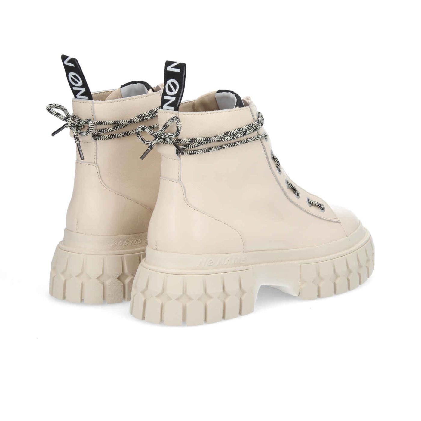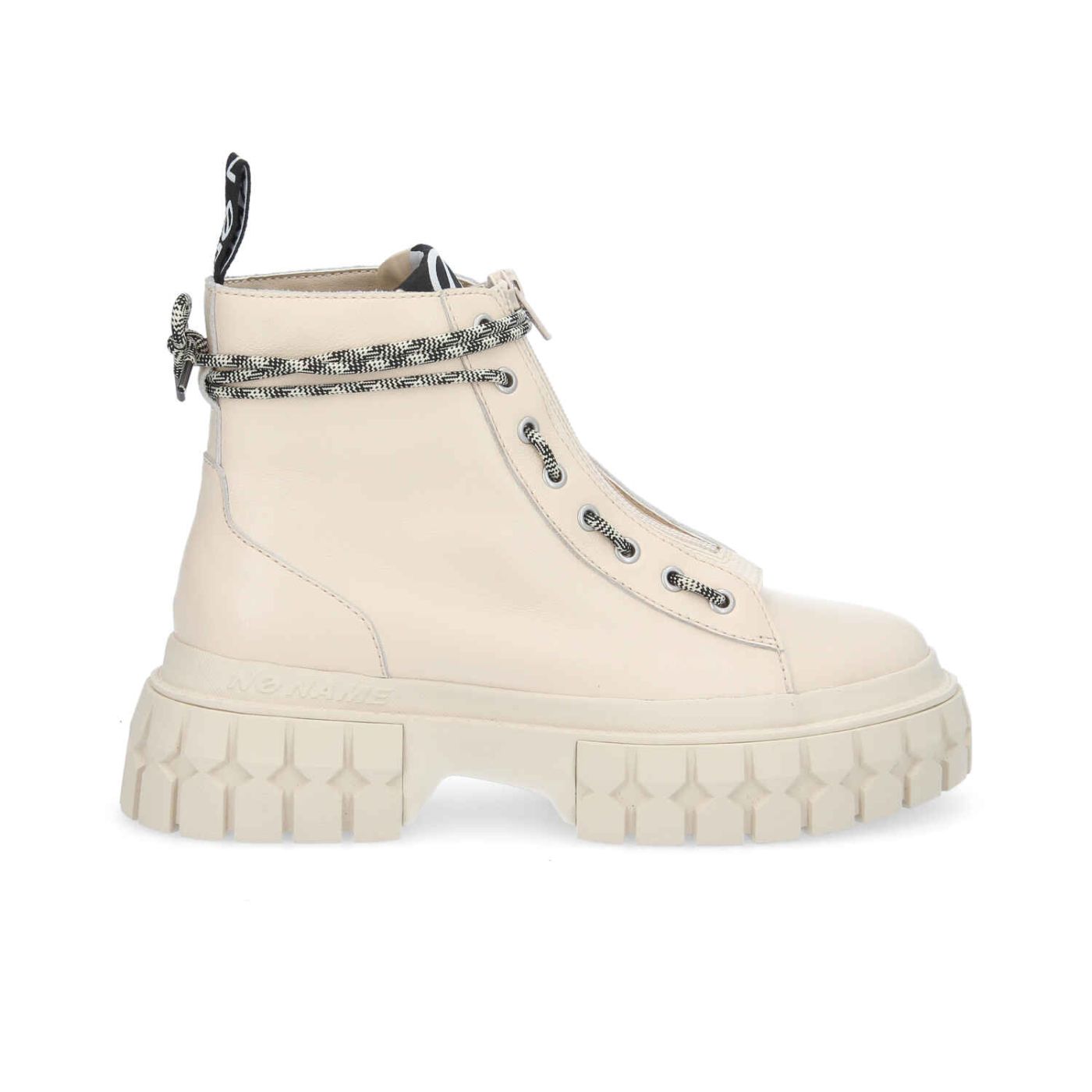 Check out this GRAVITEE ZIP BOOTS from NO NAME, an off-white lace-up platform ankle boot crafted from grained leather for a unique outdoor style. It has a removable zipped insert, bicolour round laces and an EVA and rubber sole for a durable, lightweight, comfy design. With sturdy metal eyelets and a pull-tab on the collar, this ankle boot will easily round off your favourite on-trend looks. -Grained calfskin leather upper -Polyester textile lining -Removable microfibre textile insole -Pull-tab with logo on the back of the collar -5 cm ultra-lightweight textured EVA and rubber sole -Removable zipped insert -Bicolour round laces