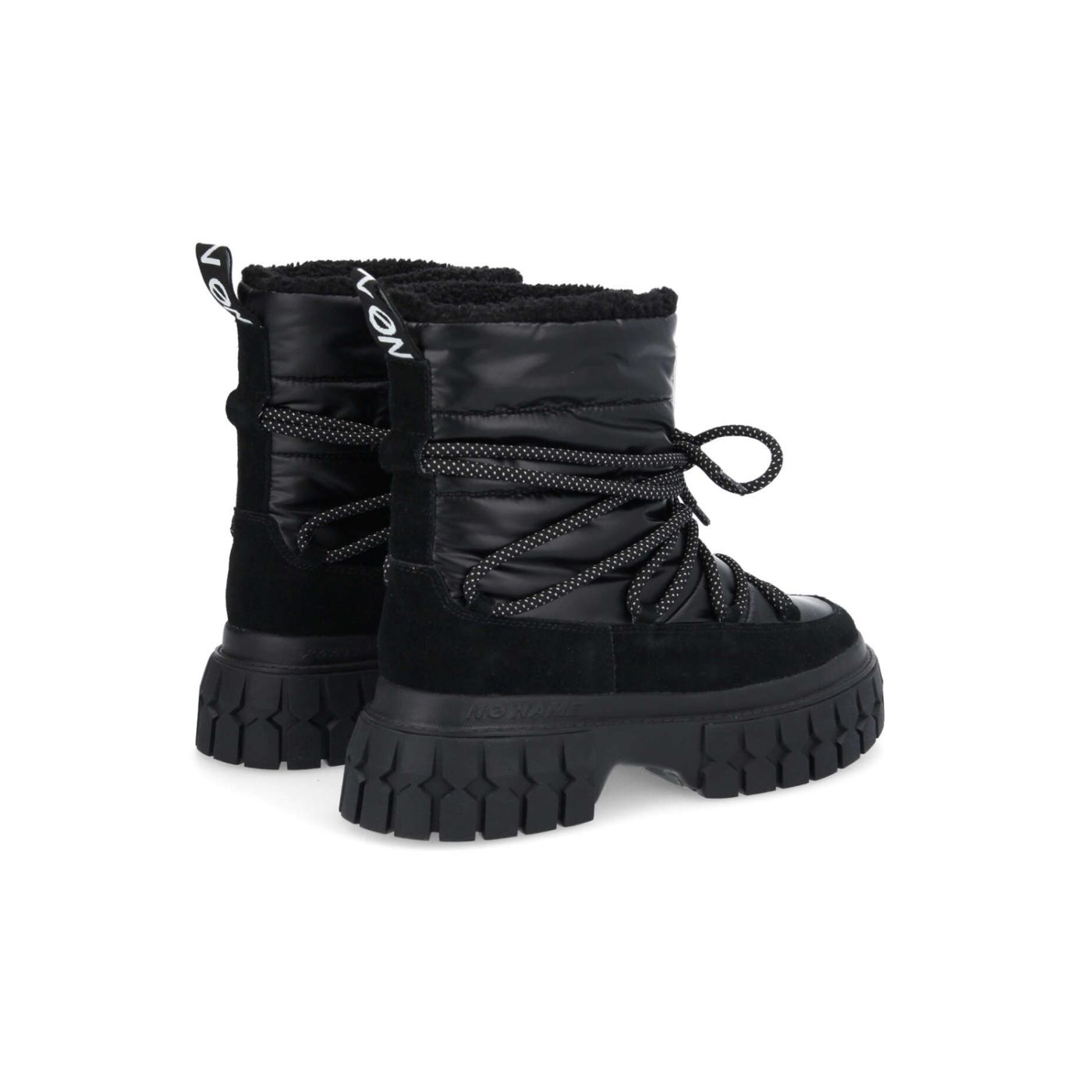 NO NAME's GRAVITEE SNOWBOOTS are women's après-ski boots made from waterproof canvas and black suede, lined with a cosy polyester bouclé knit. A 5 cm EVA and rubber platform sole provides optimal grip and a lightweight feel. The perfect boot to tackle all your urban adventures in comfort and style. -Polyester and calfskin suede upper -Polyester textile lining -Removable polyester textile insole? -Pull-tab with logo on the back of the collar -5 cm ultra-lightweight textured EVA and rubber sole -Bicolour round laces -Also comes with a set of plain round laces
