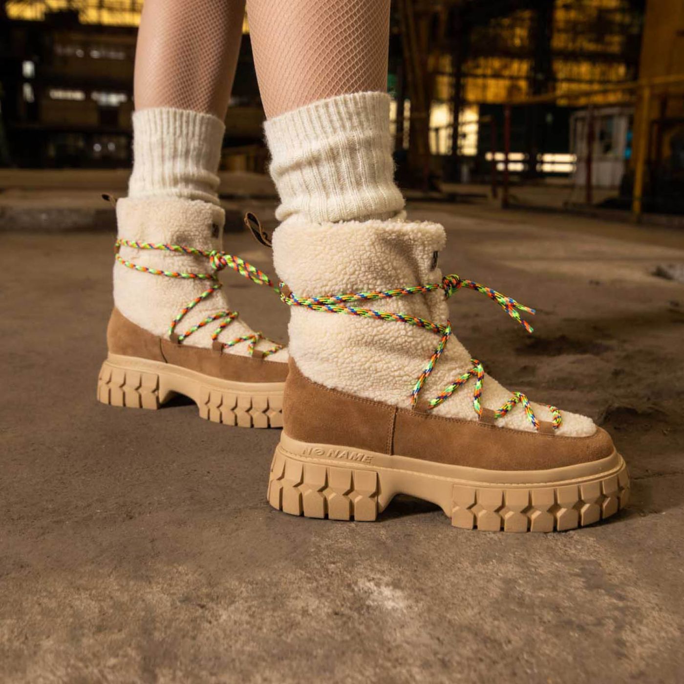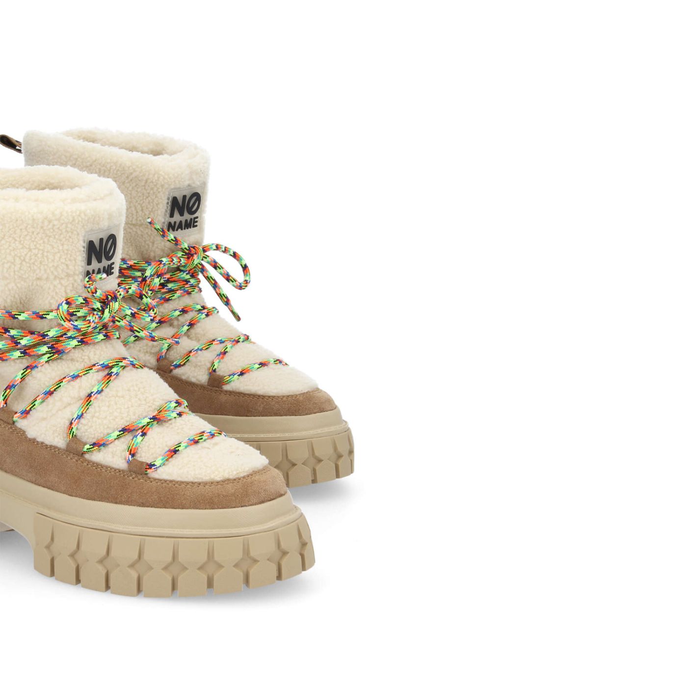 Check out the GRAVITEE SNOWBOOTS from NO NAME a women's après-ski-style boot crafted from waterproof canvas and hazelnut suede. Thanks to a 5 cm EVA and rubber platform sole and warm polyester lining, this comfy boot will easily handle chilly winters. -Polyester and calfskin suede upper -Polyester textile lining -Removable polyester textile insole -Pull-tab with logo on the back of the collar -5 cm ultra-lightweight textured EVA and rubber sole -Multicoloured round laces -Also comes with a set of plain round laces